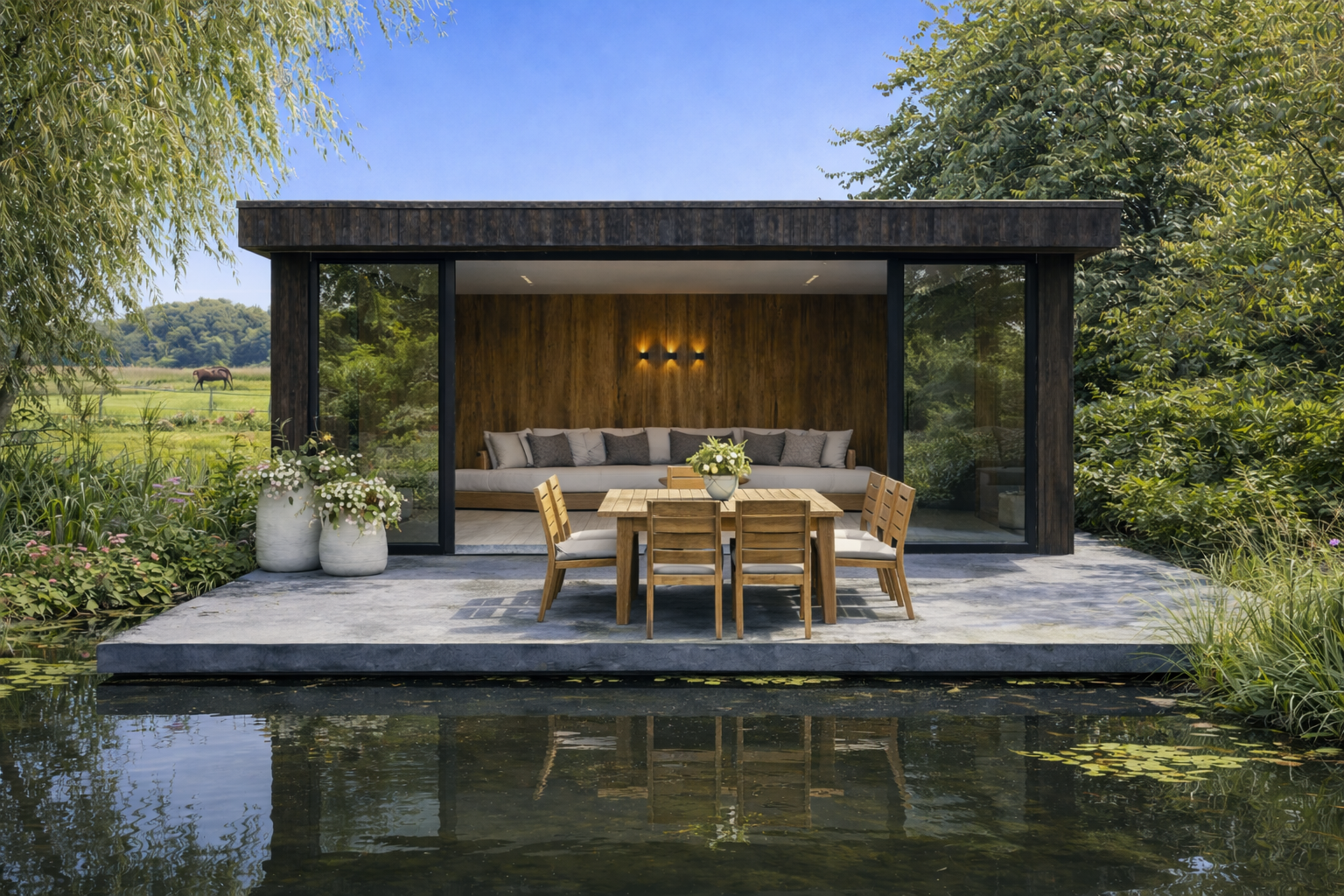 Geen standaard oplossingen, maar een buitenverblijf dat vanaf de basis voor u wordt ontworpen en geproduceerd. Afmetingen, indeling en uitstraling sluiten naadloos aan op uw woning en leefstijl. Zo ontstaat een plek die niet alleen functioneert, maar vanzelfsprekend aanvoelt.